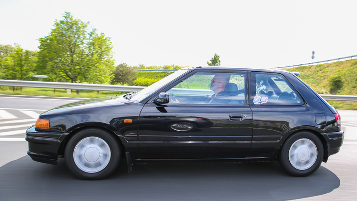 1990-ben nem létezett durvább 323-as Mazda TX-L-nél. A turbós kisautó 1840 köbcentis motorja 163 lóerőt, 216 Nm nyomatékot tud, állandó összkerékhajtása van, durván 1200 kiló a saját tömege (a sok hajtott kerék miatt bő 150 kilóval volt nehezebb, mint az elöl kaparós, 128 lovas GT).